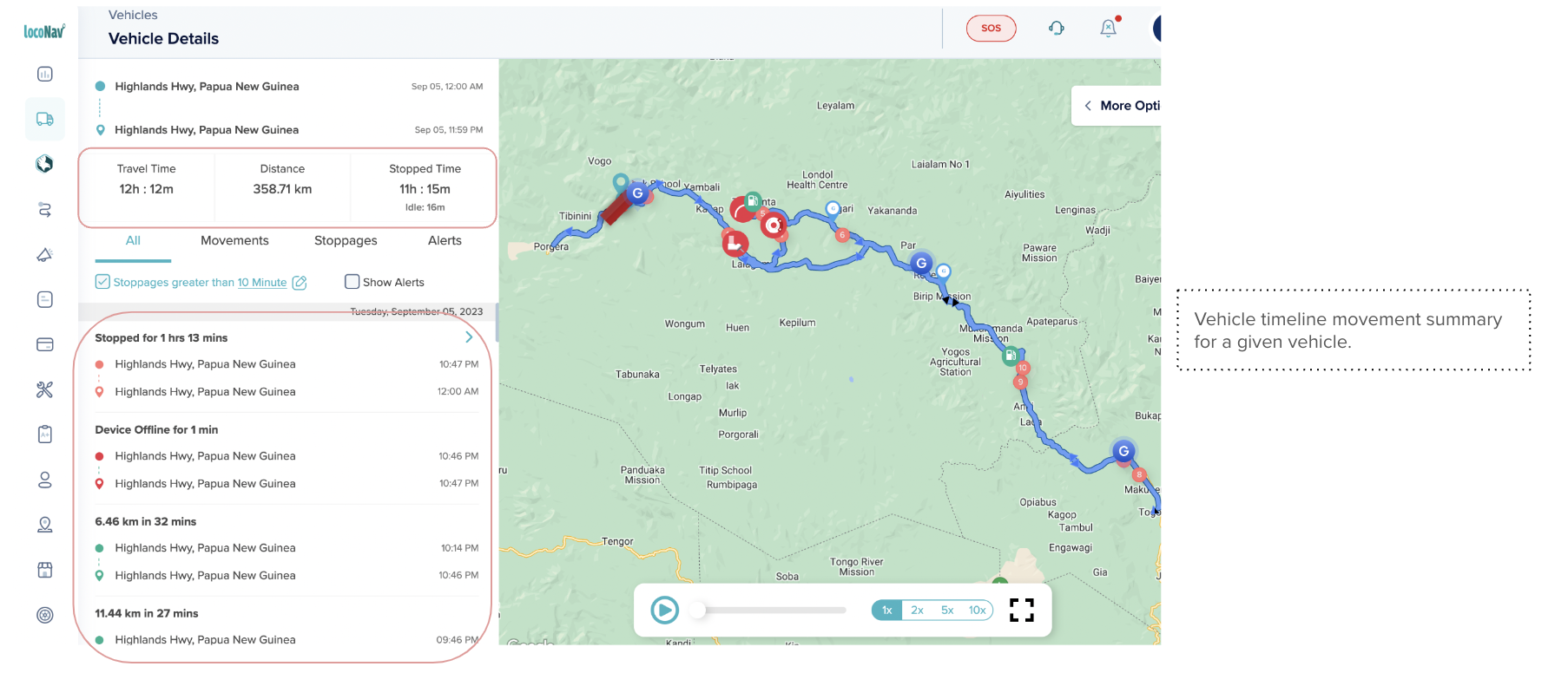 The platform can take up to two minutes to update the vehicle timeline movement summary.