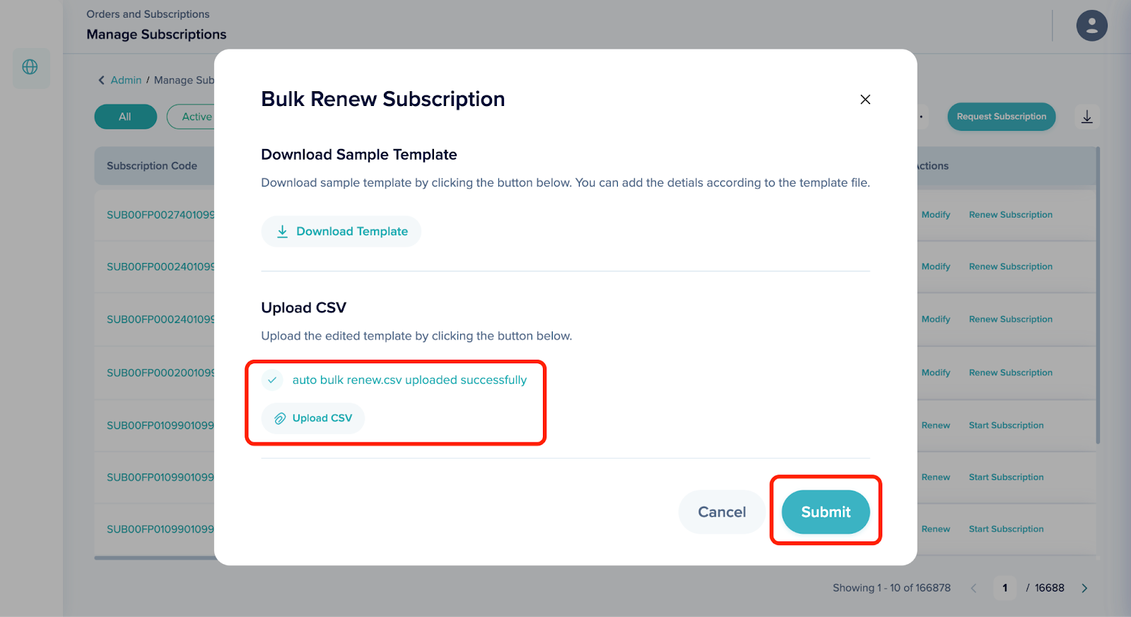 Step 5: Save the CSV file and upload it. Cick ‘Submit’ once uploaded.