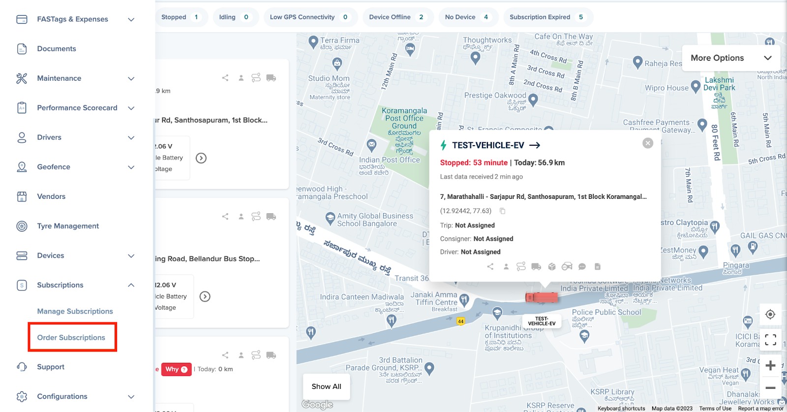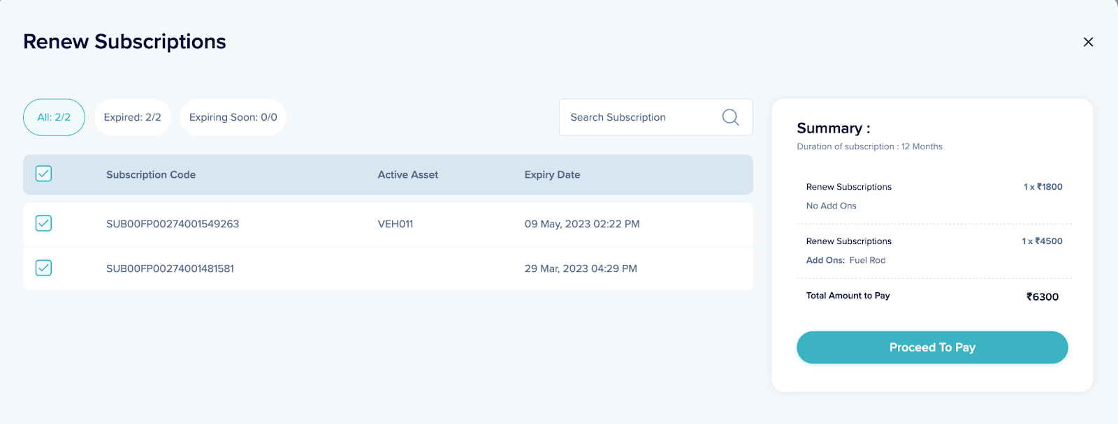 Step 4: Next, select the subscriptions that you want to renew from the ‘Select Subscriptions/Vehicles’ dropdown.