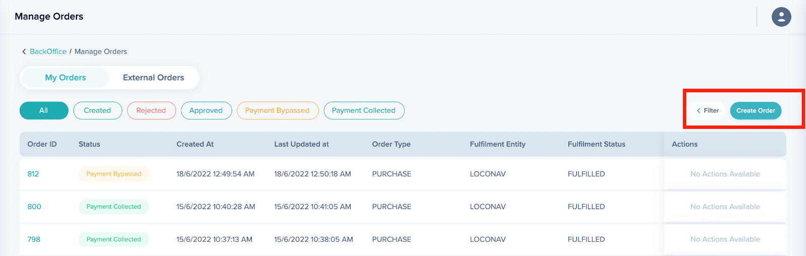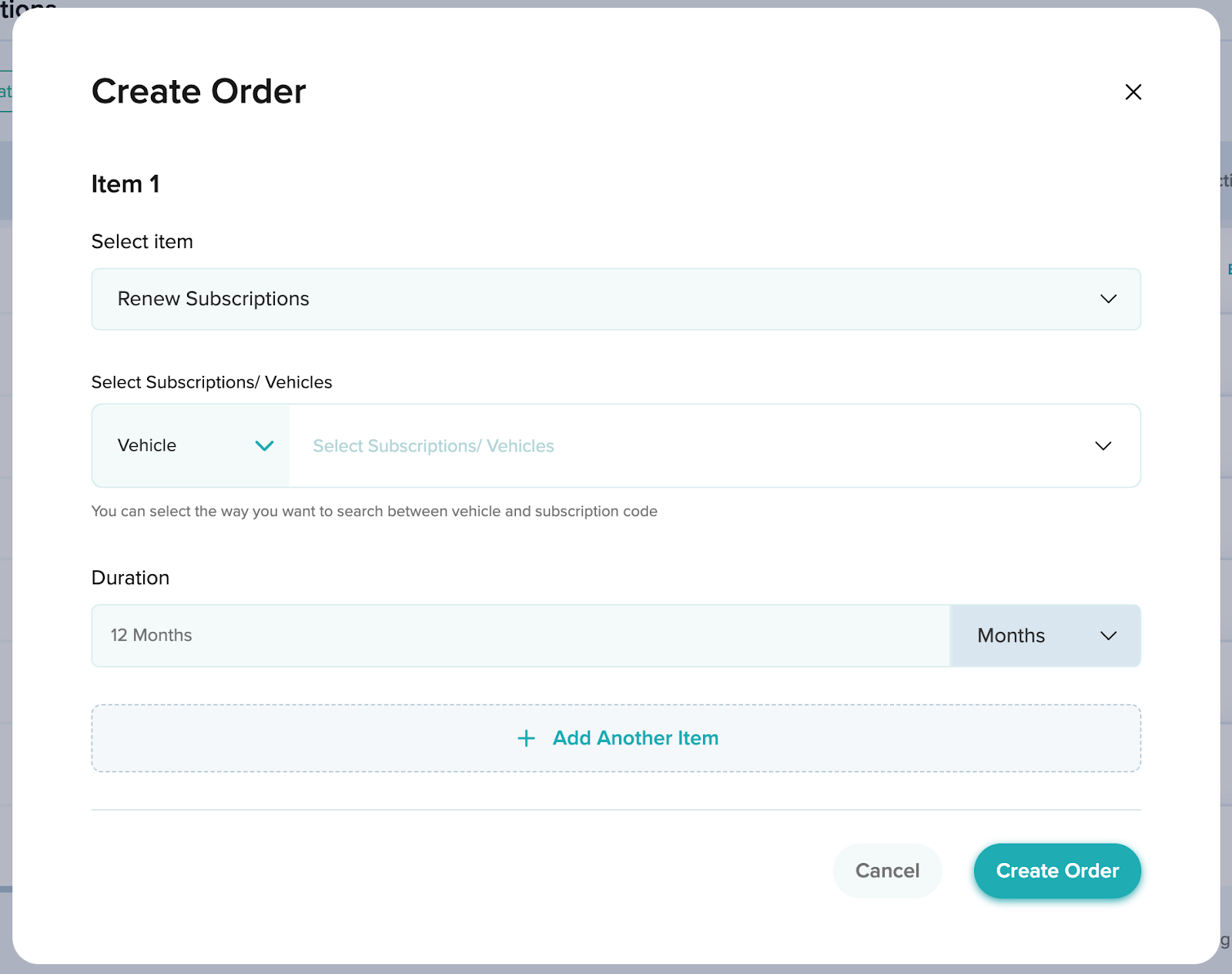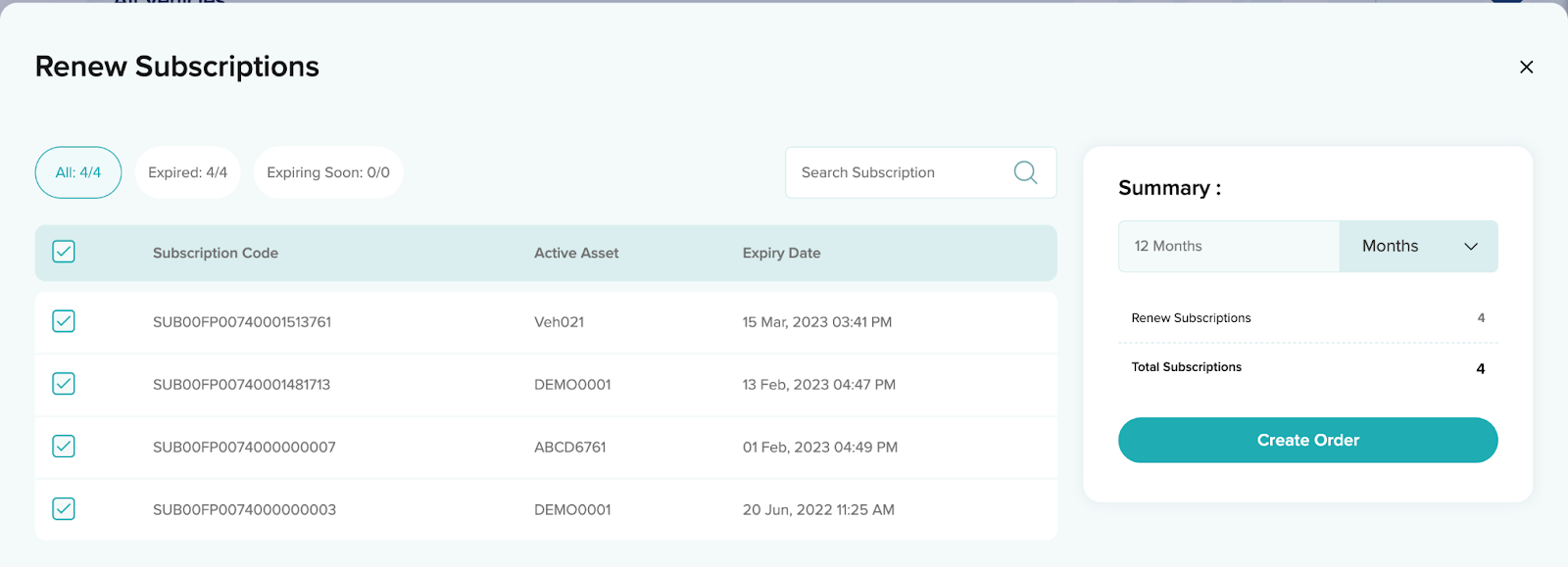 Step 2: To create an order for renewing your subscriptions, click ‘Create Order’ on the top-right of the dashboard.