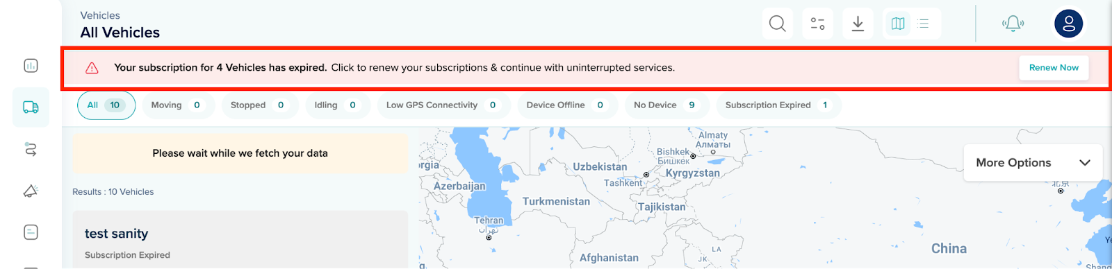 Step 1: When a subscription renewal is due or has expired, you will start seeing a ‘Renew Subscription’ banner at the top of the homepage on your LocoNav web app.
